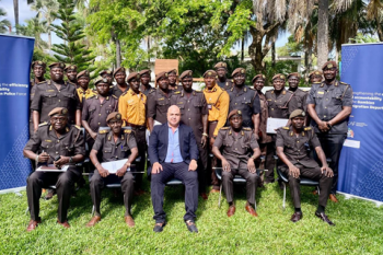 Graduates of a two-day training workshop for senior officers of the Gambia Immigration Department (GID) in how to address the challenges of information sharing, cooperation, and coordination to achieve more integrated border management. Twenty-four senior officers attended, including the GID Commissioner of Operations, Commissioner of Migration Management, Regional Commissioners, and Operations Commanders. We’ve been supporting the Gambian government on SSG/R since 2017, thanks to funding from the European Union, France, Germany, and the United Kingdom.